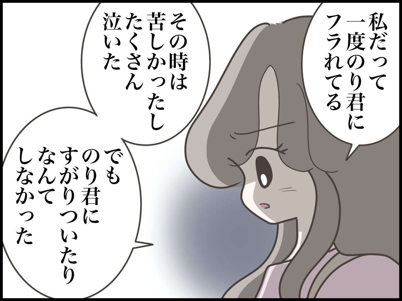 結婚を考えていた彼氏のり君に突然フラれるが、婚活パーティーで偶然再会する。