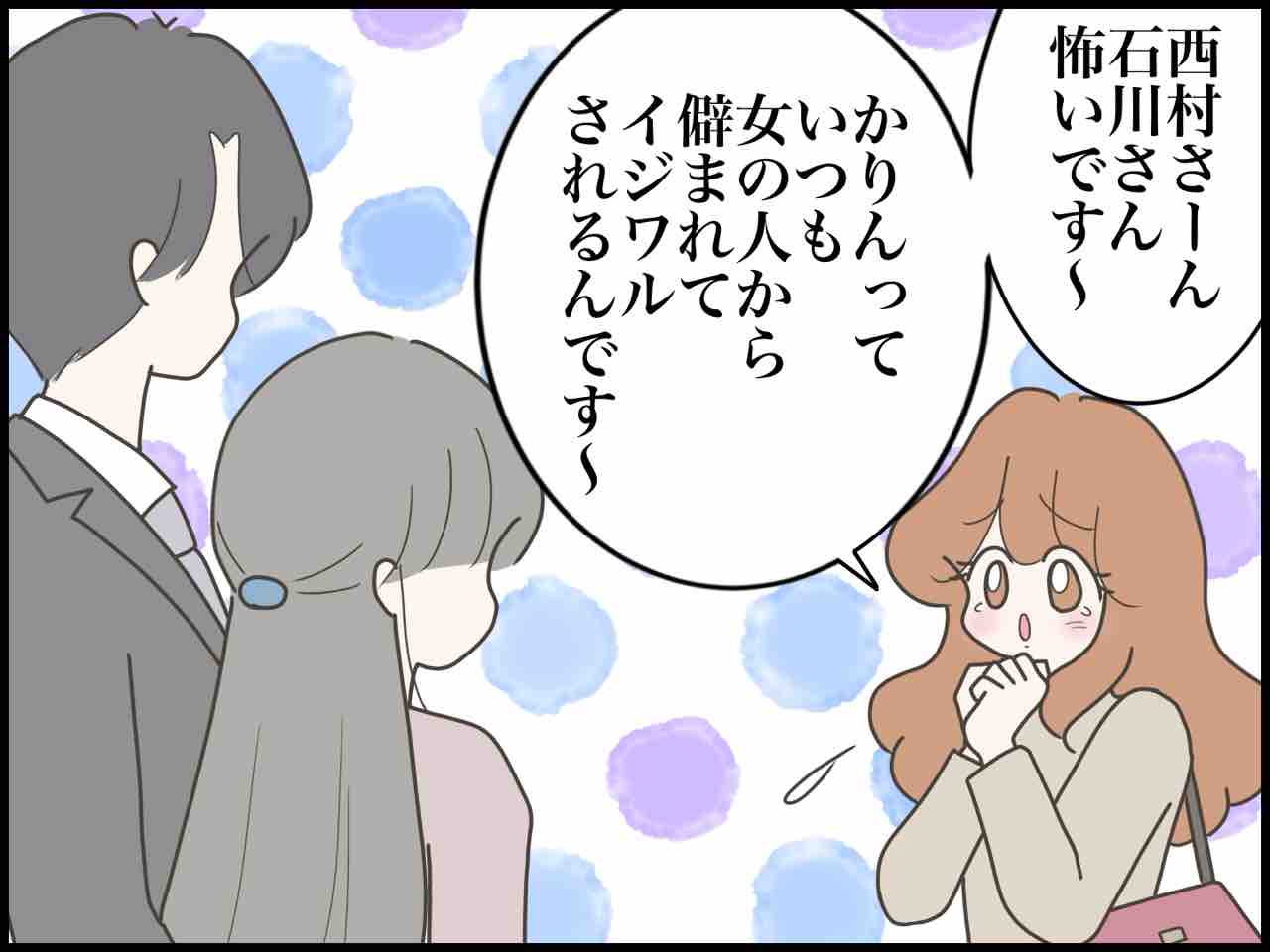 女は若くて可愛いが勝ち⁈【89】 2025年11月22日 石川さゆきは32歳独身OL。これといった取り柄がないのがコンプレックス。そんな中、中途採用で若くて可愛い新入社員、夢野かりん(24)がやってきたが…。はじめから読む⤵︎ 前回のお話⤵︎ 本編です⤵︎かりんにとって、もっとも屈辱的な一言を放つ西村さん。かりん、どうする…⁈続きます☆